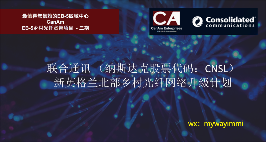 联合通讯(纳斯达克股票代码:CNSL)新英格兰北部乡村光纤网络升级计划,即是CanAm的EB-5乡村光纤宽带项目-三期。